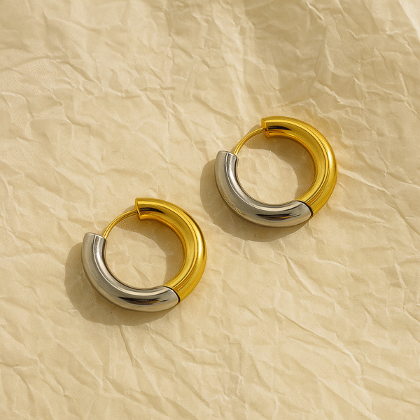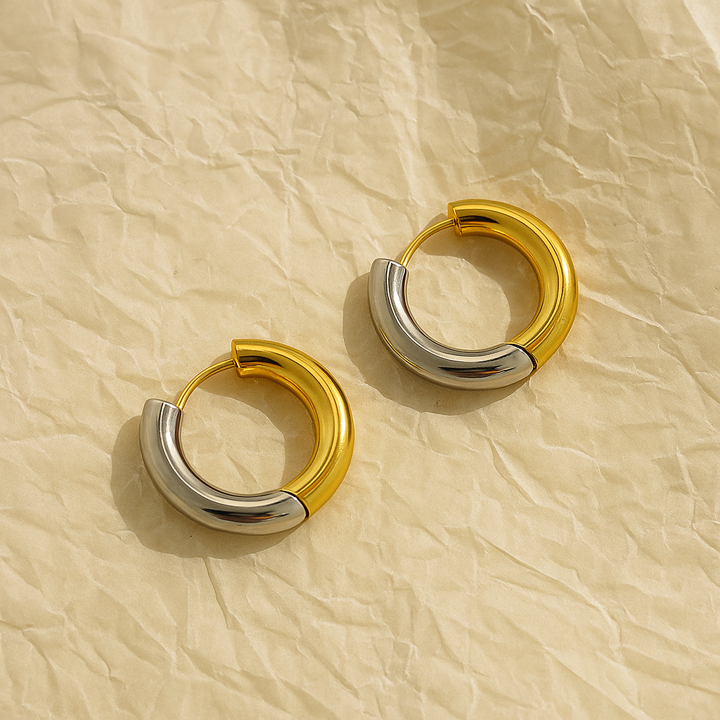 + Free ShippingElegant and versatile, these dual-tone hoops combine the richness of gold with the sleek shine of silver. Their textured design adds a modern twist, making them perfect for everyday wear or special occasions. Finished with an anti-tarnish coating, they retain their brilliance and stay beautiful for longer. A chic addition to every jewelry box.